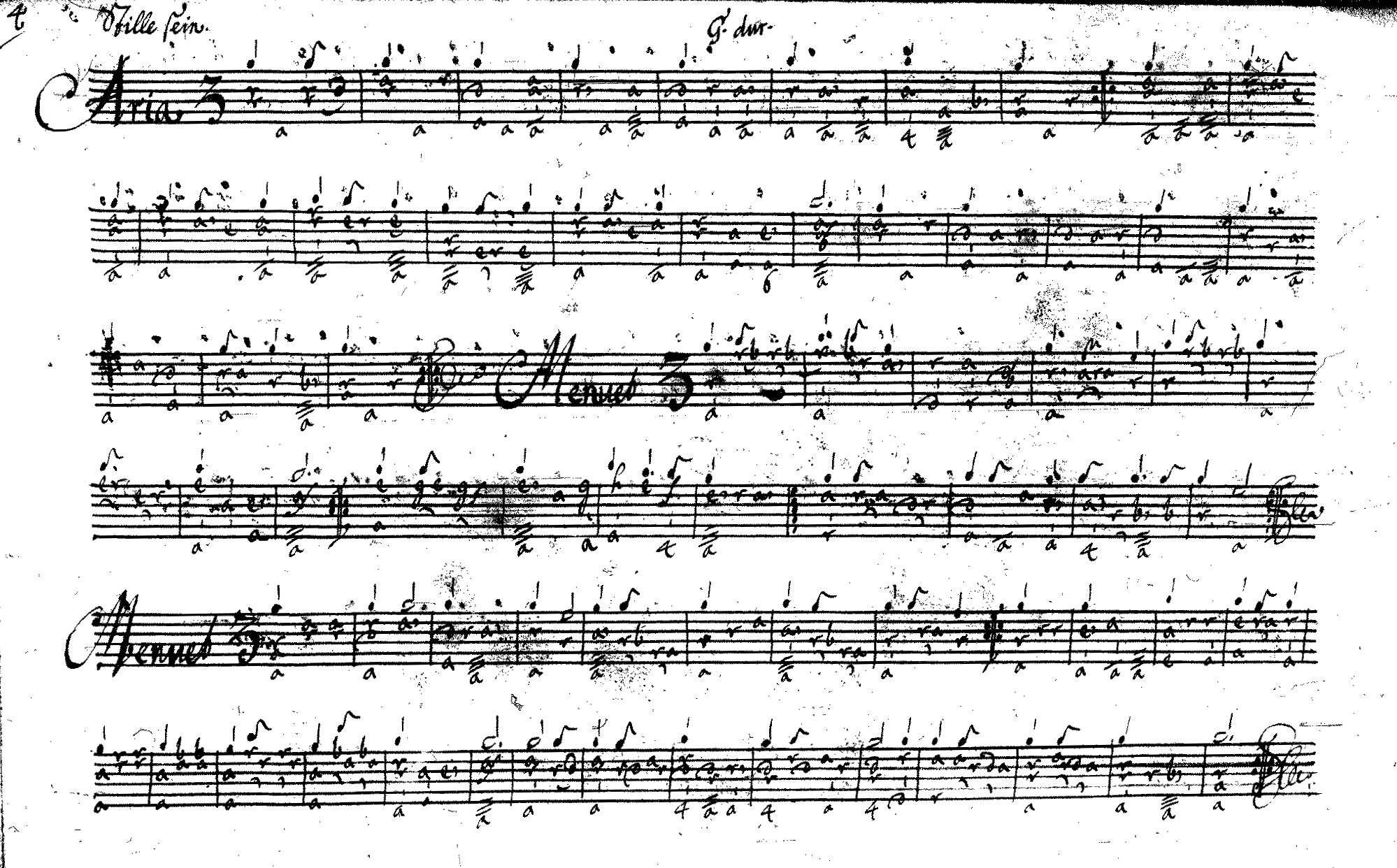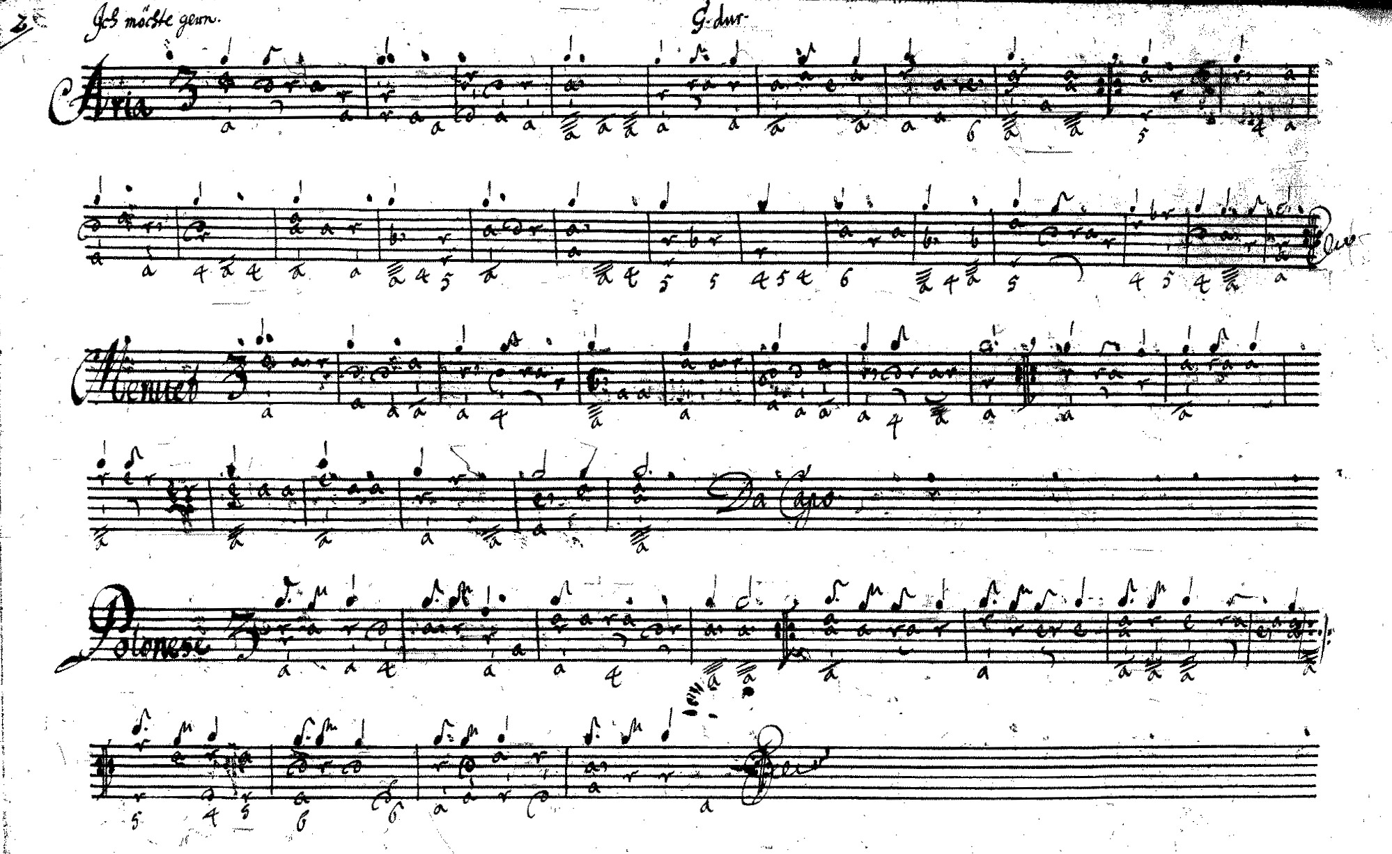 Præludium (Prælud:) Aria : Ich möchte gern Menuet Polonaise (Polonese) Aria : Ihr Solt nicht wissen Menuet Aria : Stille sein Menuet Menuet Menuet Menuet Aria Menuet Aria Prælude allegro